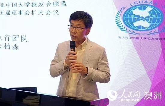 澳大利亚中国大学校友会联盟主席朱柏森在致辞中回顾了联盟执行团队的换届历程,肯定了联盟近年来在服务校友、促进交流、资源共享等方面取得的丰硕成果。他期待凝聚各校友会力量,开展更多有意义的活动,为联盟的发展贡献力量。